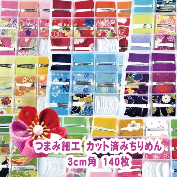 つまみ細工の材料 ちりめん風生地 3x3cm 140枚入 ブランド電子 株式