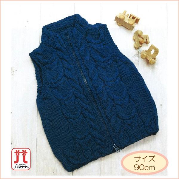 編み図付キット N 1245 交差編みのジップアップキッズベスト ハマナカ