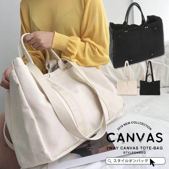 メルカリ シンプル 2way キャンバス トート バッグ オシャレ 帆布