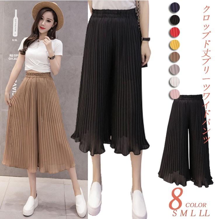 ガウチョパンツ スカート見え ワイドプリーツ ガウチョ クロップド丈 ボトムス レディース ゴム フリル 無地 Yto19031417 Ytolive 通販 Yahoo ショッピング