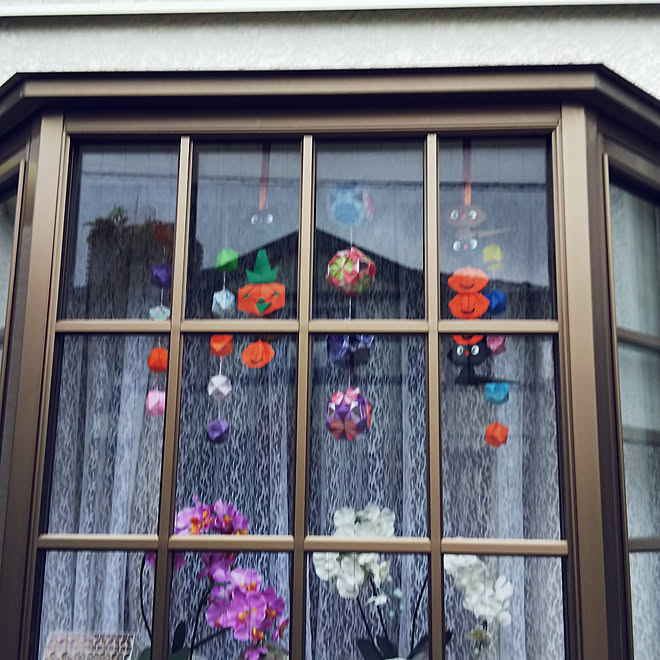 玄関 入り口 折り紙 折り紙のくす玉 折り紙のハロウィン飾りの