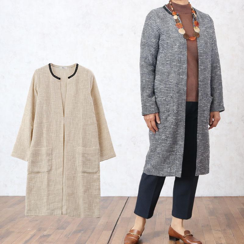 シニアレディースファッション シニア 服 ツイード ロングジャケット